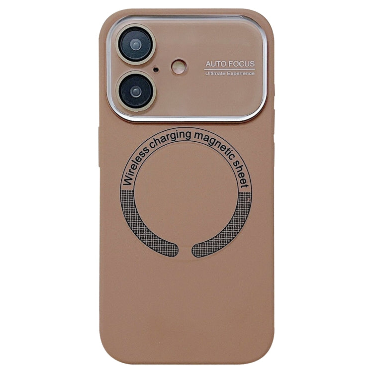 Funda de Silicona Magsafe para iPhone 16 con Lente de Vidrio Acrílico y Ventana Grande (Café)