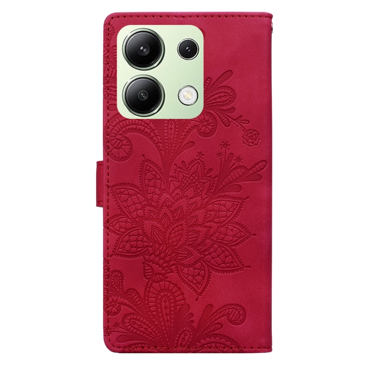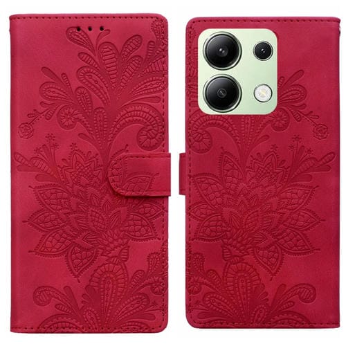 Funda de Teléfono con Hebilla Magnética y Encaje Floral En Relieve para Redmi Note 13 4G (Rojo)