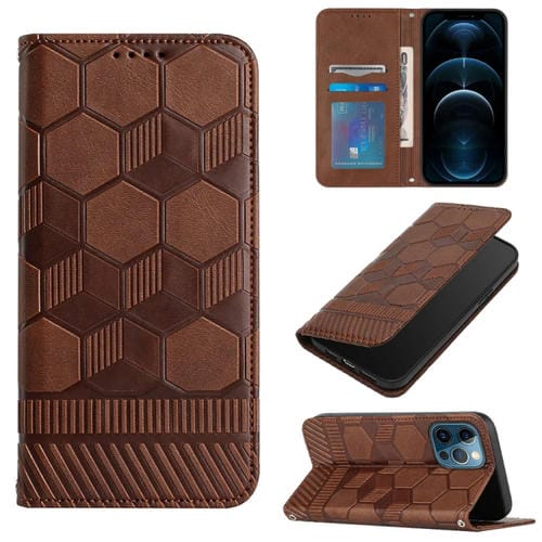 Football Texture Magnetic Leather Flip Phone Case for iPhone 12 Pro Max (Brown)