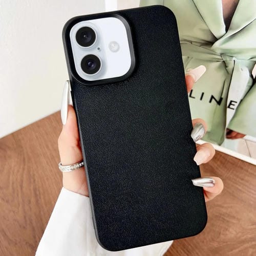 Funda de Teléfono TPU con Textura de Cuero para iPhone 16 (Negro)