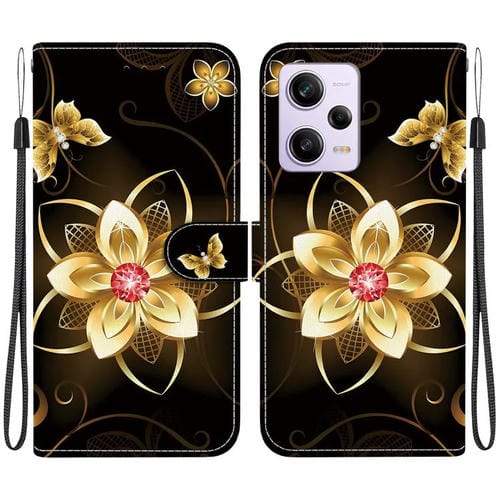 Funda de Teléfono de Cuero con Dibujo de Colores y Textura de Cristal para Redmi Note 12 Pro / Poco X5 Pro (Flor Dorada)