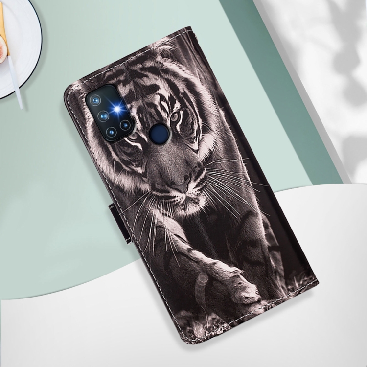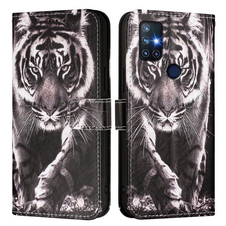 Funda de Cuero para OnePlus Nord N10 5G con Patrón Tigre Blanco y Negro