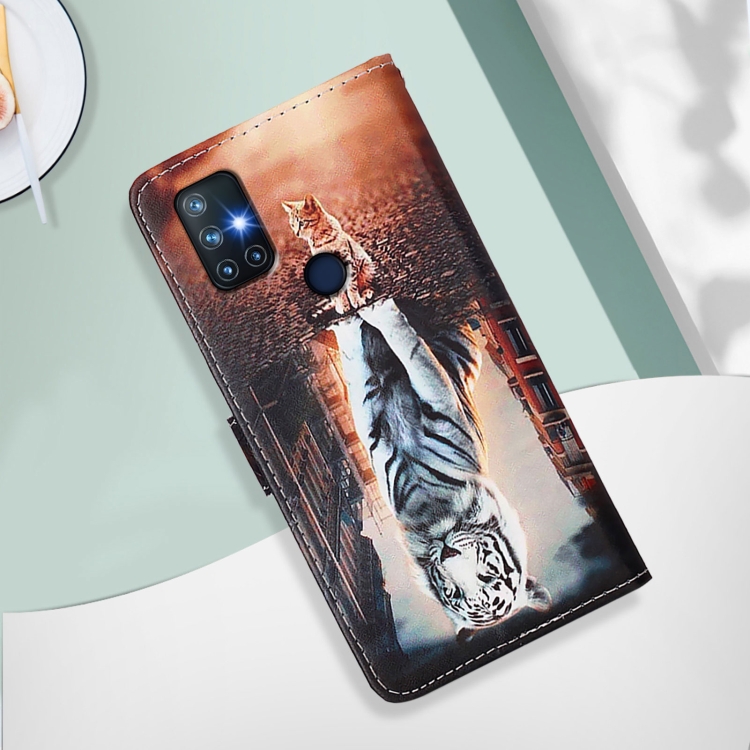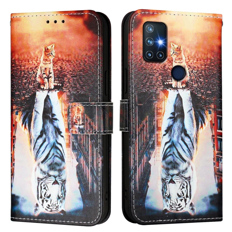Funda de Cuero para OnePlus Nord N10 5G con Patrón de Gatos y Tigres (Colores)