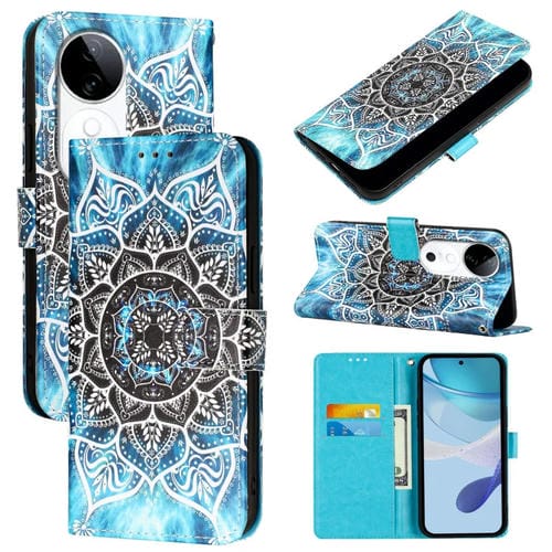 Funda de Teléfono de Cuero con Tejido Liso y Patrón de Dibujo de Colores para Vivo S19 (Mandala Submarino)
