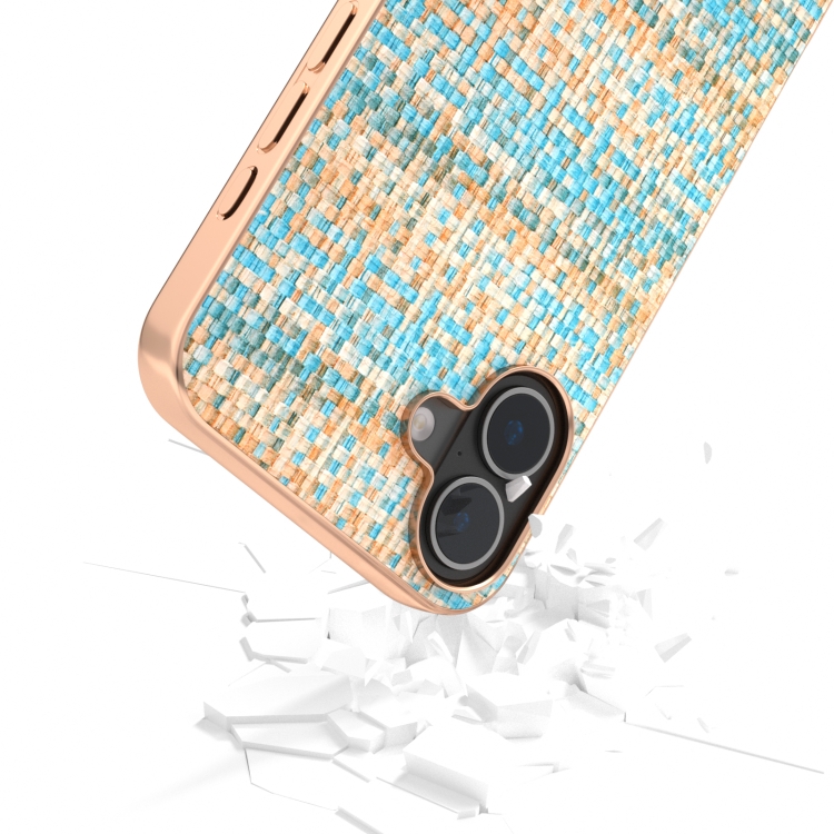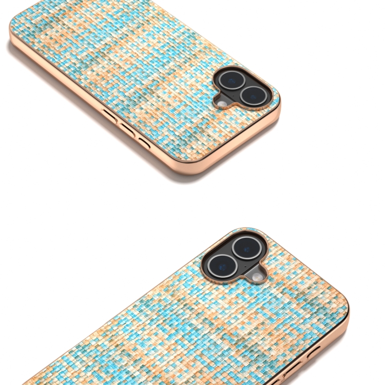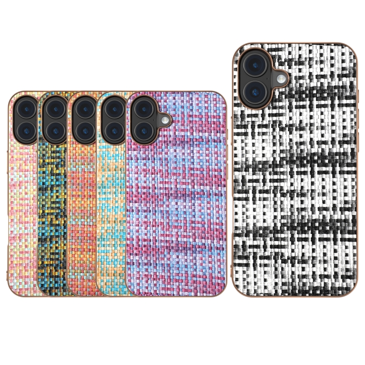 Funda de Teléfono PU con Textura de Celosía y Marco Galvanizado para iPhone 16 (Azul)