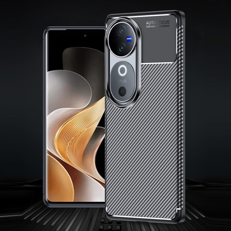 Funda de Teléfono de TPU a Prueba de Golpes con Textura de Fibra de Carbono para Vivo V40 Pro (Negra)