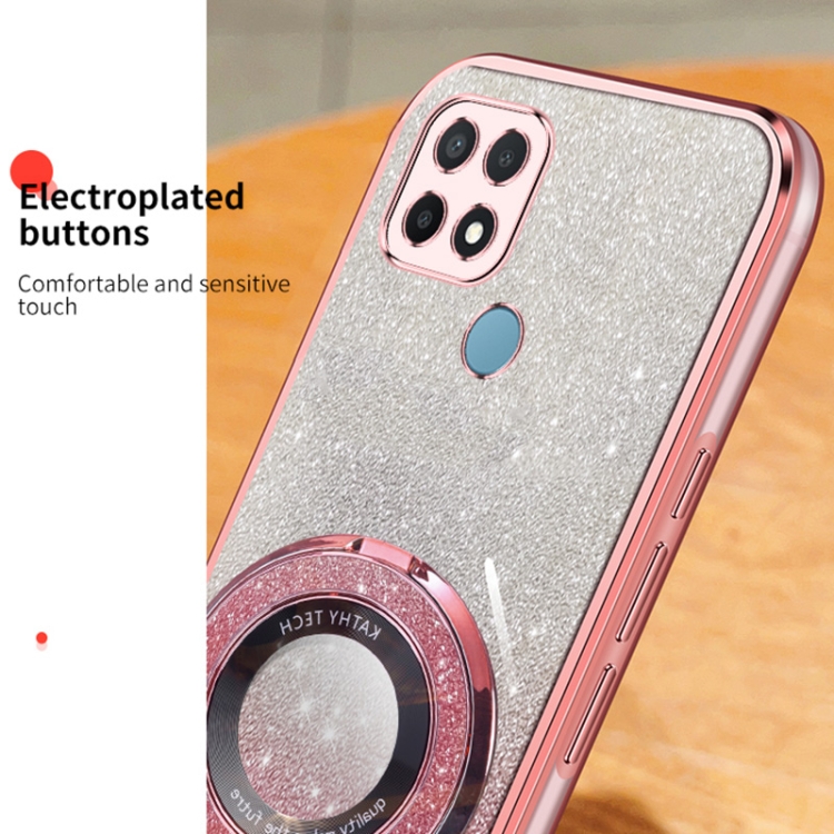 Funda de Teléfono de TPU con Soporte Redondo y Purpurina Degradada para Oppo A35/A15 (Azul Sierra)