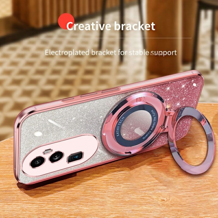 Funda de Teléfono de TPU con Soporte Redondo y Purpurina Degradada para Oppo Reno10 Pro+ (Azul Sierra)