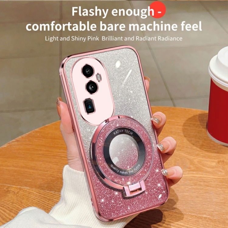 Funda de Teléfono de TPU con Soporte Redondo y Purpurina Degradada para Oppo Reno10 Pro+ (Morado)