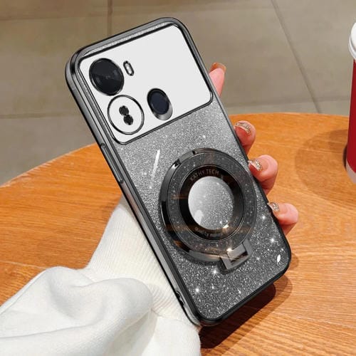 Funda de TPU con Soporte Redondo y Purpurina Degradada para Itel S23 (Negro)