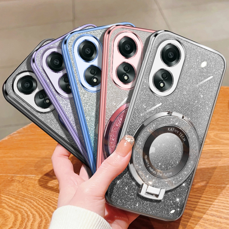 Funda de Teléfono de TPU con Soporte Redondo y Purpurina Degradada Plateada para Oppo A58 4G (Plateada)