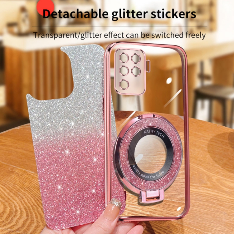 Funda de Teléfono de TPU con Soporte Redondo y Purpurina Degradada Plateada para Oppo A94 4G/Reno5 F (Plateada)