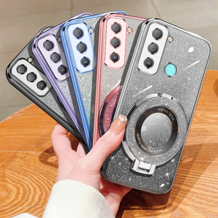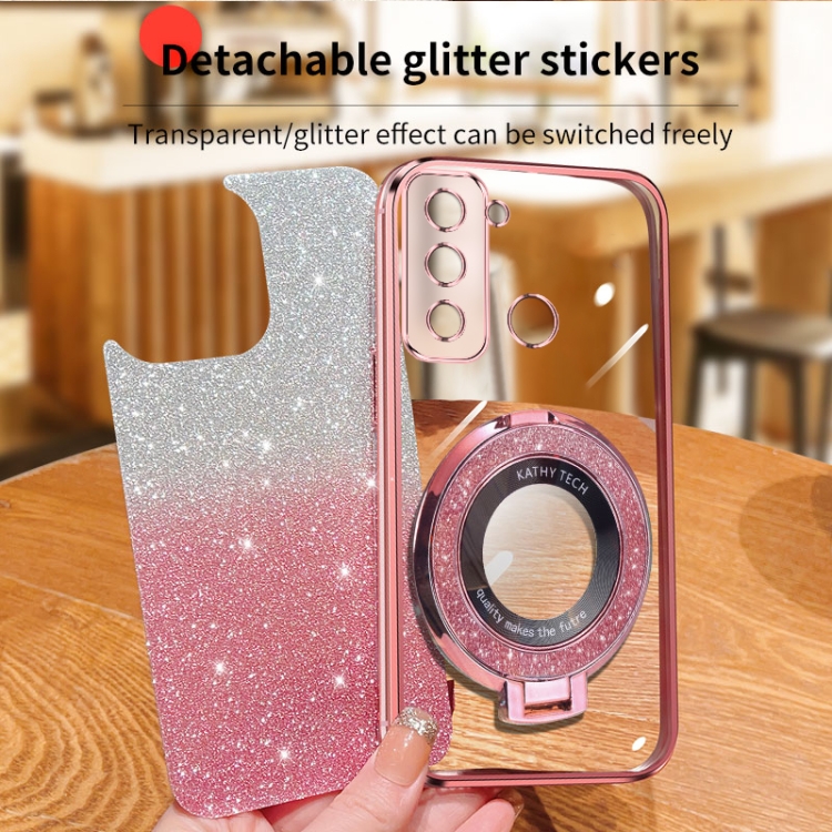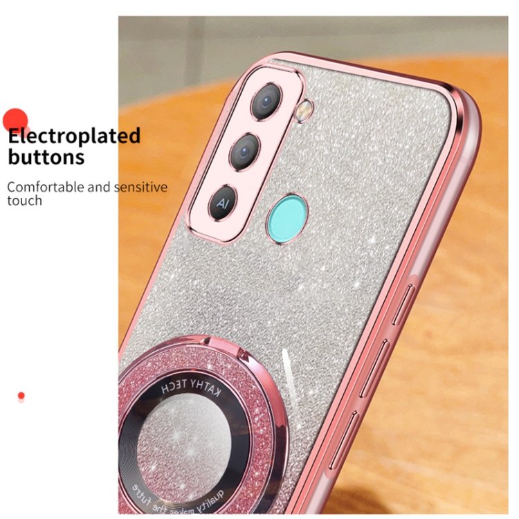 Funda de Teléfono TPU con Soporte Redondo y Purpurina Degradada para Tecno Pop 5 Lte (Rosa)