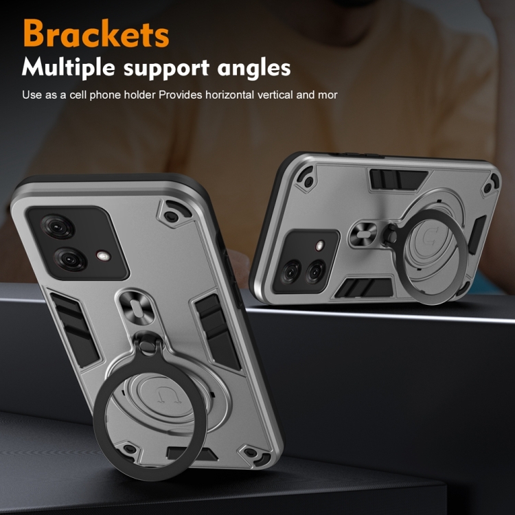 Funda híbrida TPU y PC con soporte giratorio 360° y anillo metal para Motorola Moto G84 (Gris Plateado)