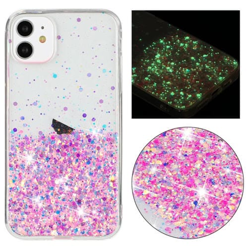 Funda TPU con Marco Transparente y Polvo Brillante Noctilucente para iPhone 11 (Rosa)