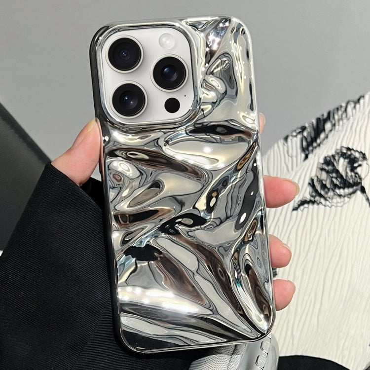 Funda TPU Pintura Galvanizada Ondas de Agua para iPhone 16 Pro Max (Plata)
