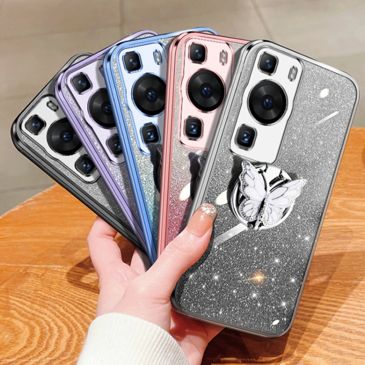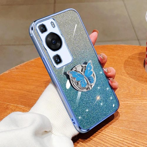 Funda TPU con Soporte Mariposa Purpurina Degradada para Huawei P60 (Azul Sierra)