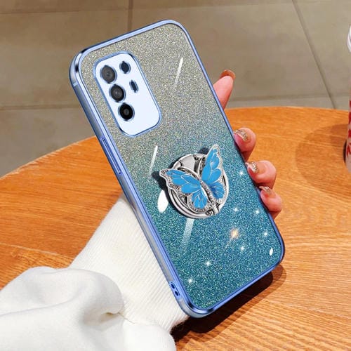 Funda de TPU con Soporte para Teléfono con Diseño de Mariposa y Purpurina Degradada para Oppo A94 5G (Azul Sierra)