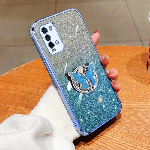 Funda de TPU con Soporte para Teléfono con Diseño de Mariposa y Purpurina Degradada para Redmi Note 9 4G (Azul Sierra)