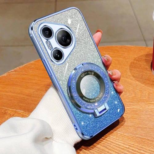 Funda TPU con Soporte Redondo y Purpurina Degradada para Huawei Pura 70 (Azul Sierra)