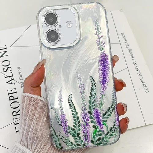 Funda TPU iPhone 16 Textura Flores Plantas Galvanizadas (Lavanda)