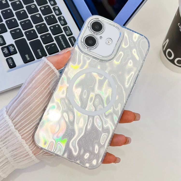Funda TPU con Textura Enchapada Magsafe para iPhone 16 con Película de Lente Brillante (Arrugas Blancas)