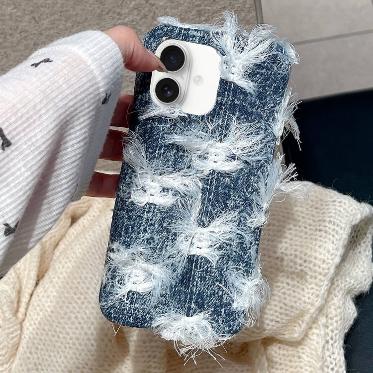Funda TPU de Felpa con Tejido a Rayas para iPhone 16 (Azul Oscuro)