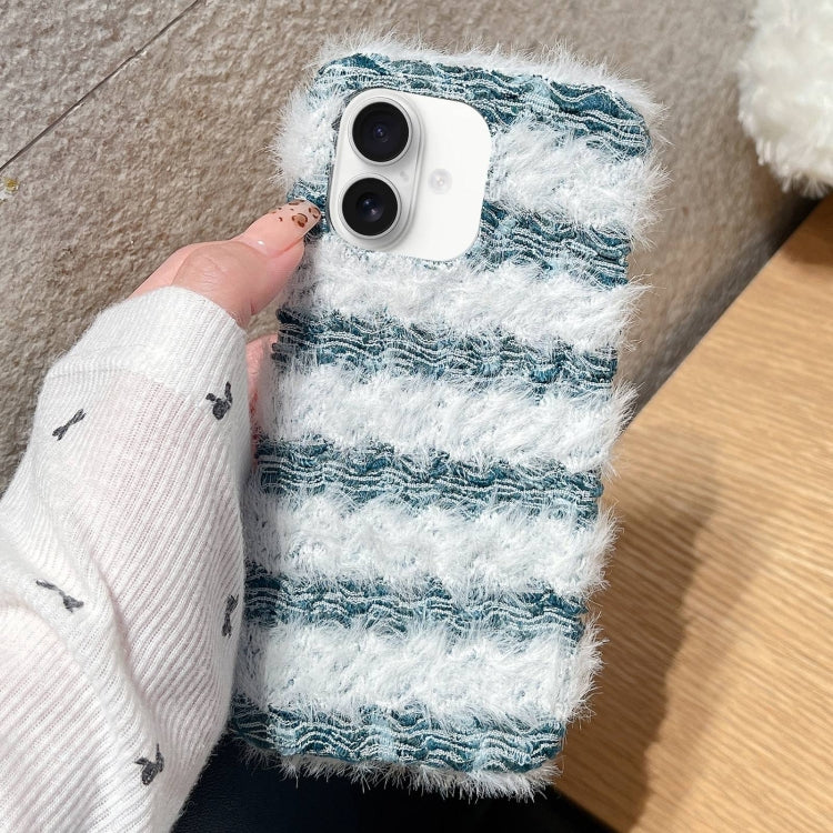 Funda TPU Felpa con Tejido a Rayas para iPhone 16 (Verde)