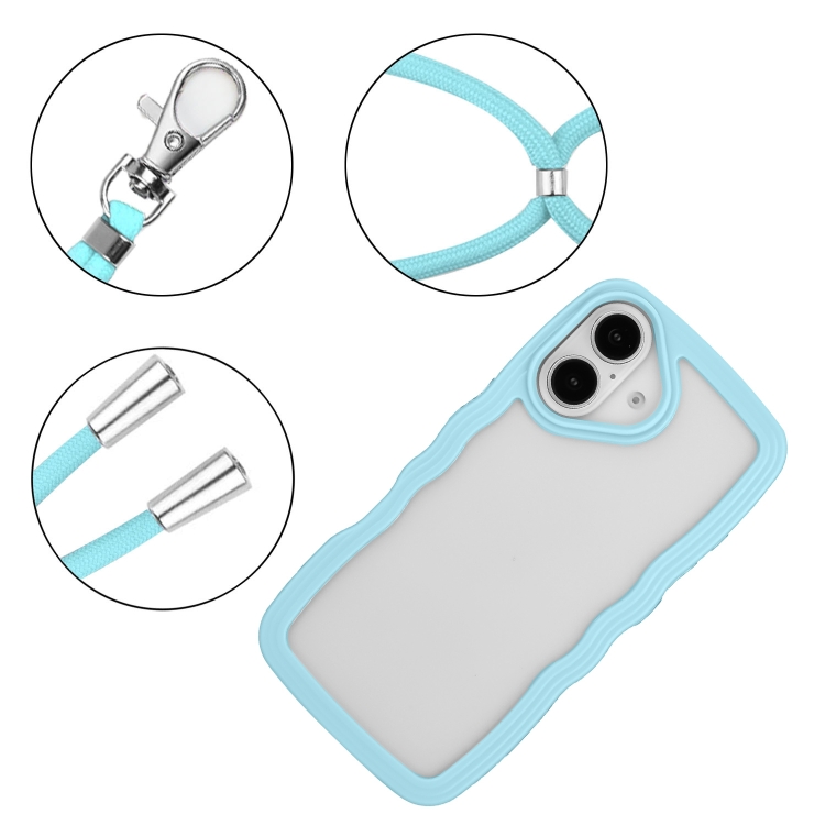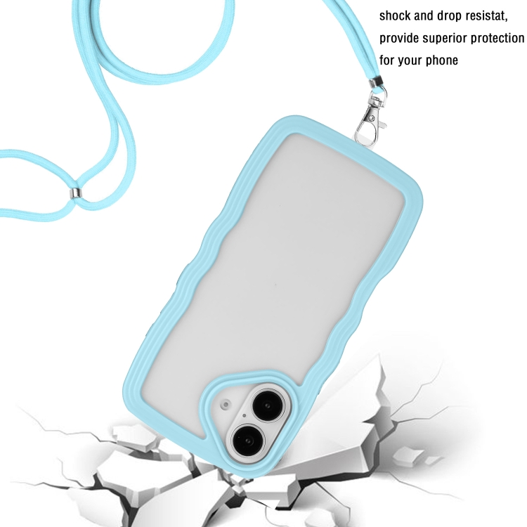 Funda TPU con Cordón para iPhone 16 Color Caramelo y Ondas (Azul)