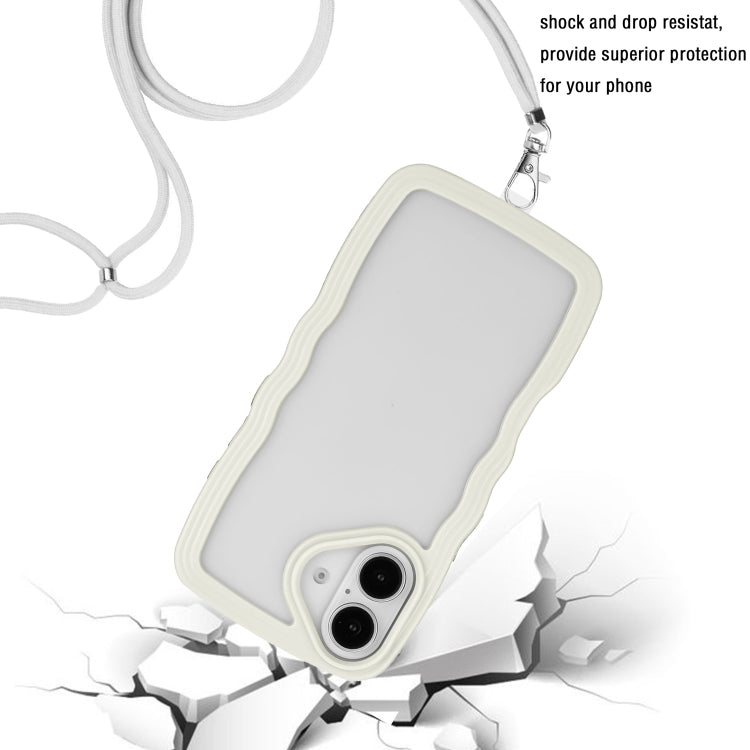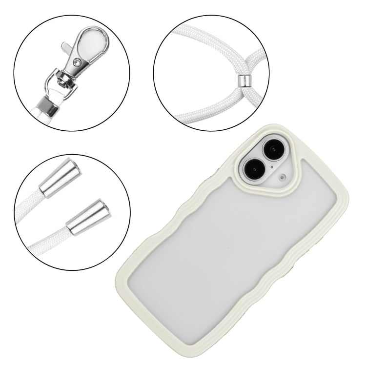 Funda TPU con Cordón para iPhone 16 Plus Caramelo y Ondas (Blanco)