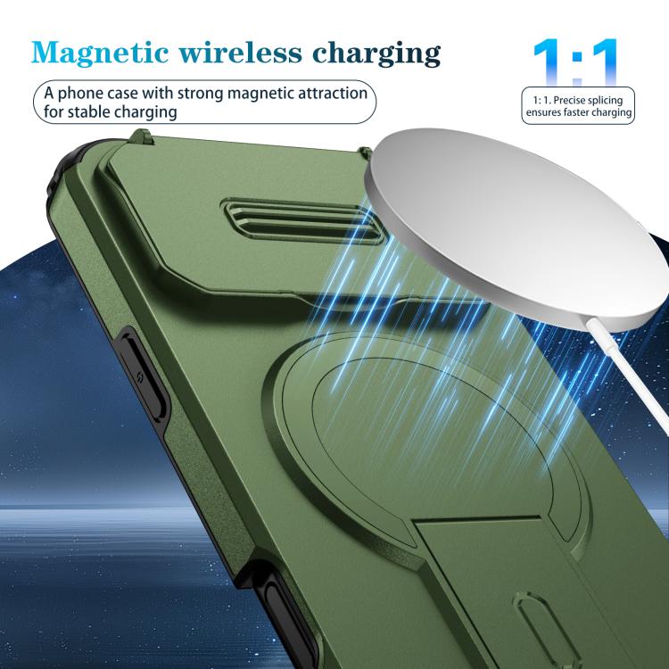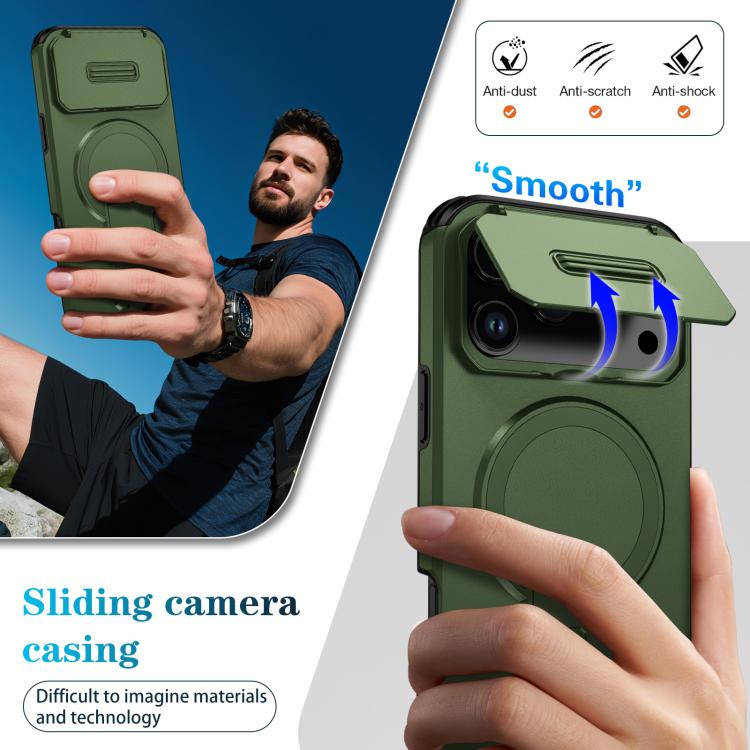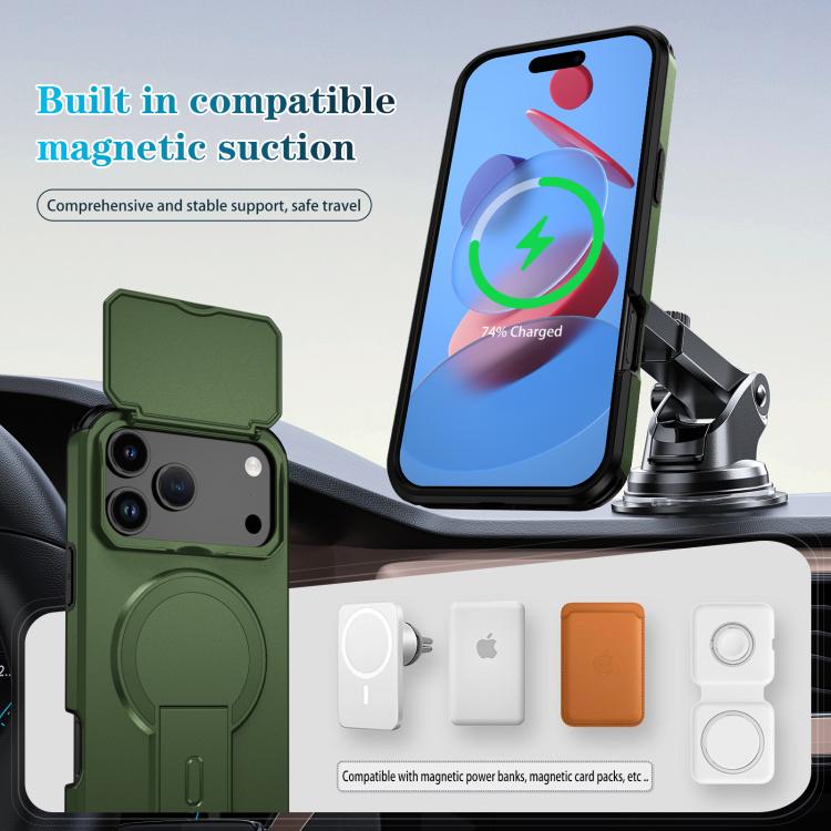 Funda deslizante con soporte MagSafe para iPhone 17 Pro Max (verde)