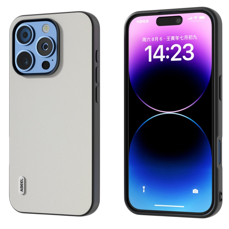 Funda de Cuero Genuino Abeel para iPhone 16 Pro Max con Marco Negro (Blanco)