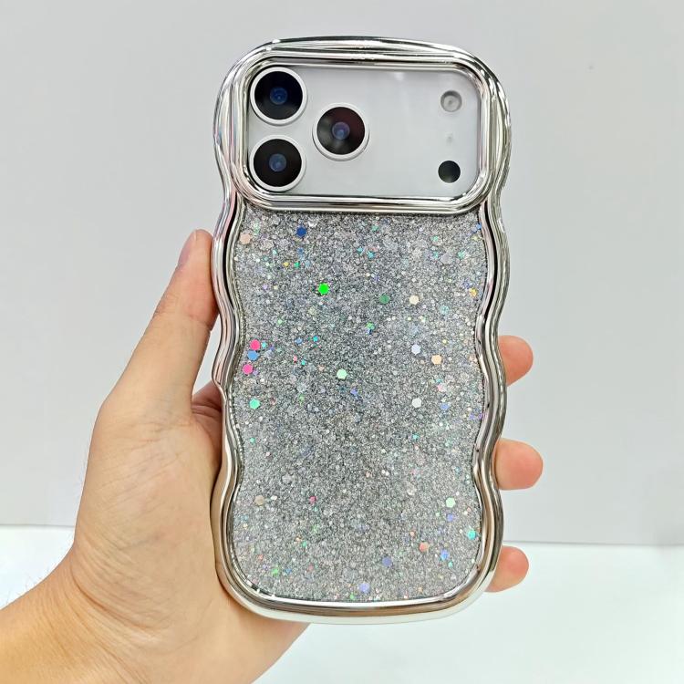 Funda galvanizada con lentejuelas y purpurina ondulada para iPhone 17 Pro (plateada)