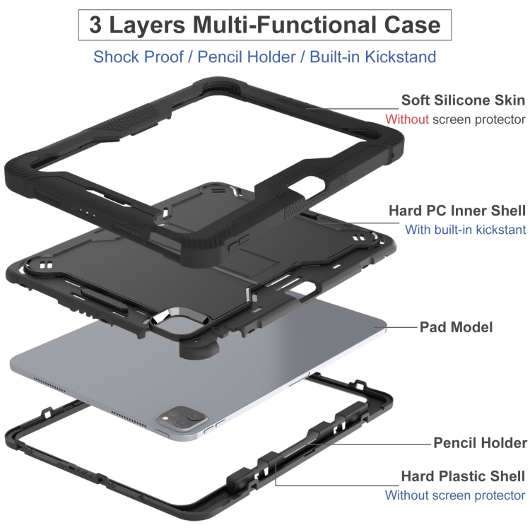 Funda híbrida Silicona a prueba de golpes para iPad Pro 11 (2024) con soporte (Negro)
