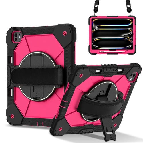 Funda híbrida de silicona para iPad Pro 13 2024 con diseño de robot (Negro, Rosa y Rojo)