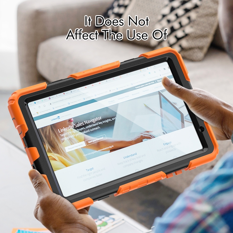 6. Correa de hombro desmontable: La correa de mano ajustable proporciona un agarre fácil y cómodo, una característica imprescindible cuando presentas tu tableta a otras personas. La correa de hombro desmontable y ajustable puede ayudarte a llevar tu tableta de forma más segura mientras haces senderismo, viajas y otras actividades al aire libre. Esto también se puede utilizar para asegurar tu tableta al asiento del coche.