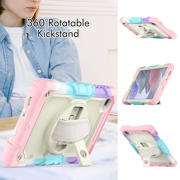 Funda híbrida silicona para Tablet Samsung Galaxy Tab A7 Lite T220 con correa para el hombro (Rosa Camuflaje)