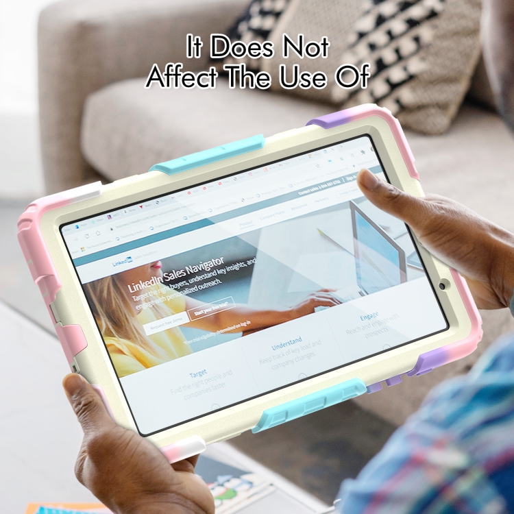 6. Correa de hombro desmontable: La correa de mano ajustable proporciona un agarre fácil y cómodo, una característica imprescindible cuando presentas tu tableta a otras personas. La correa de hombro desmontable y ajustable puede ayudarte a llevar tu tableta de forma más segura mientras haces senderismo, viajas y otras actividades al aire libre. Esto también se puede utilizar para asegurar tu tableta al asiento del coche.