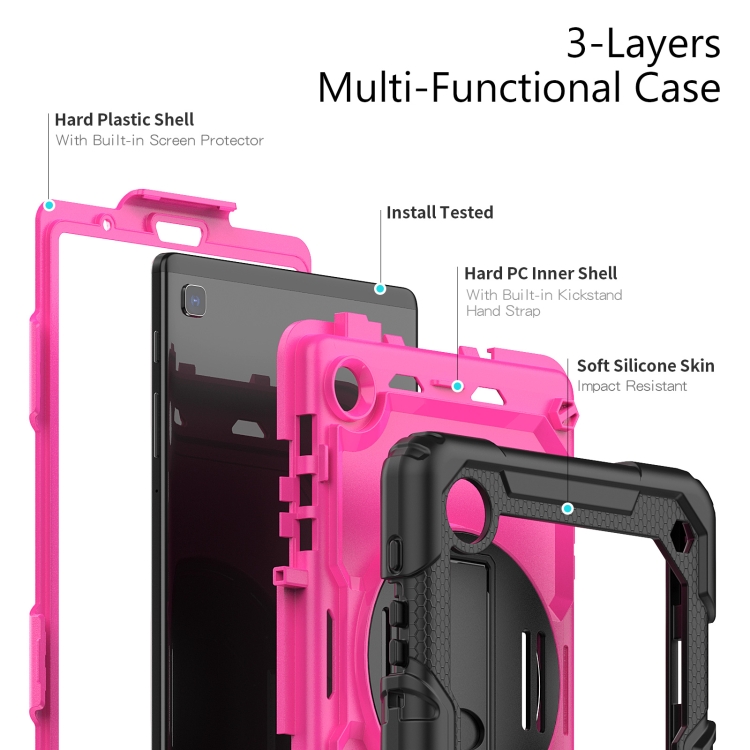 Funda híbrida para Tablet Samsung Galaxy Tab A7 Lite T220 con correa para el hombro (Rosa, Rojo, Negro)