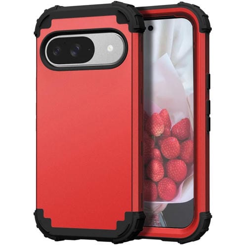 Funda Híbrida de Silicona Google Pixel 9 3 en 1 a Prueba de Golpes (Rojo y Negro)