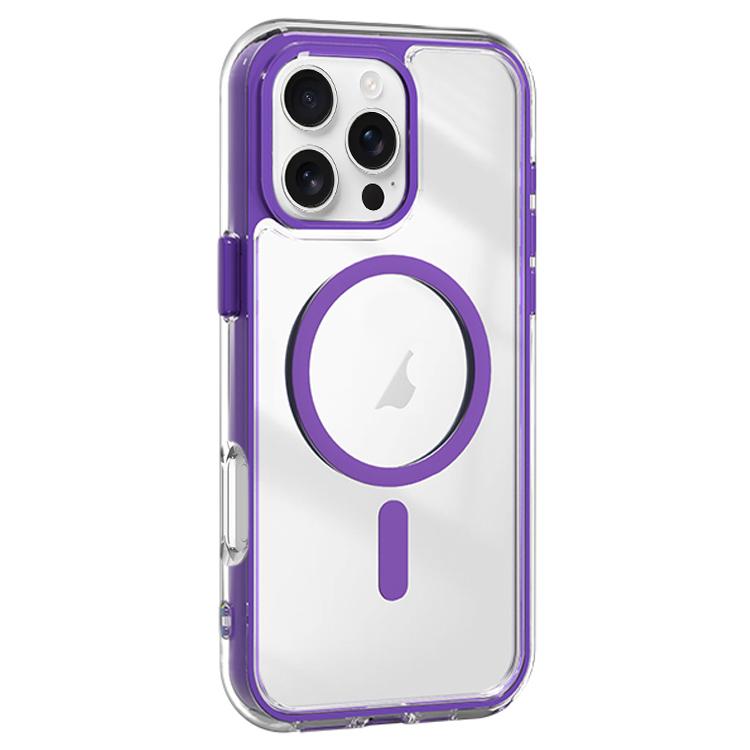 Funda híbrida TPU acrílico iPhone 16 Pro Max Magsafe a prueba de golpes (Morado)