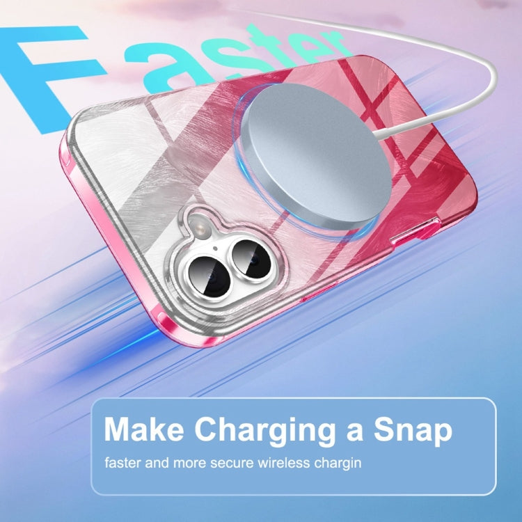 Funda híbrida TPU PC diseño plumas degradado Imd iPhone 16 (Rosa y Rojo)