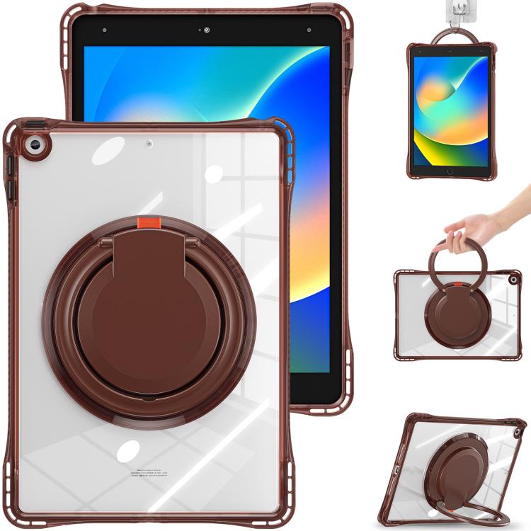Funda híbrida TPU para iPad 10.2 2021/2020/2019 con asa de anillo giratorio (Chocolate)