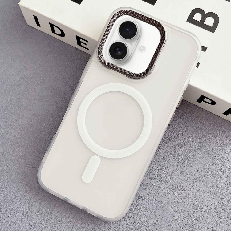 Funda híbrida TPU y PC con marco Lente diamante para iPhone 16 Magsafe (Blanca)