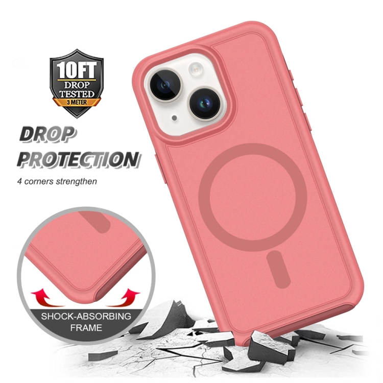 Funda híbrida TPU y PC para iPhone 14 Plus con protección Magsafe a prueba de golpes (Rosa Oscuro y Granate)