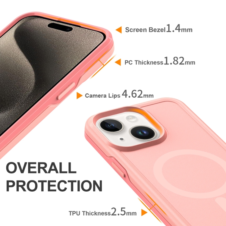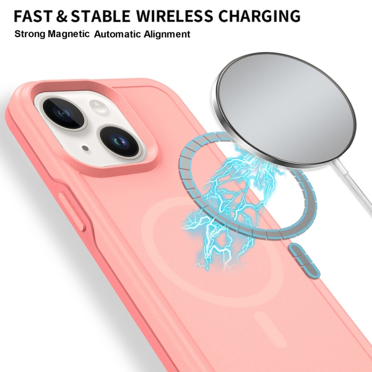 Funda híbrida TPU y PC iPhone 14 Protección Magsafe Prueba de golpes (Rosa Claro y Rojo Coral)