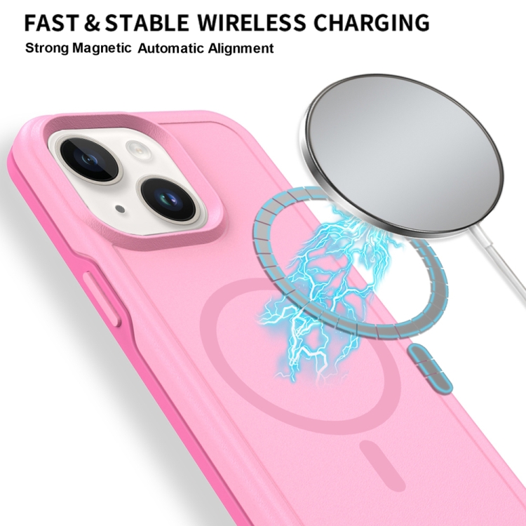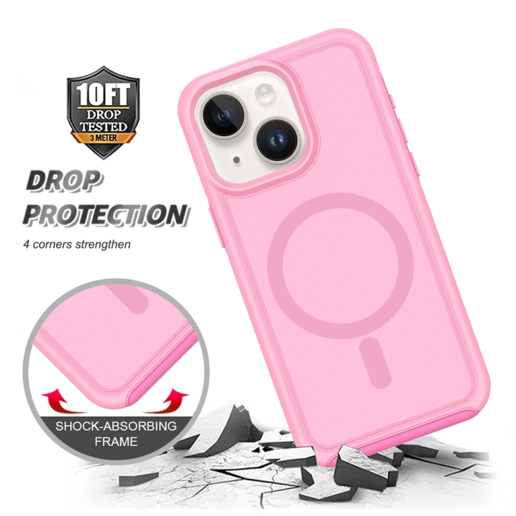 Funda híbrida TPU y PC iPhone 15 protección Magsafe a prueba de golpes (Morado y Rosa)