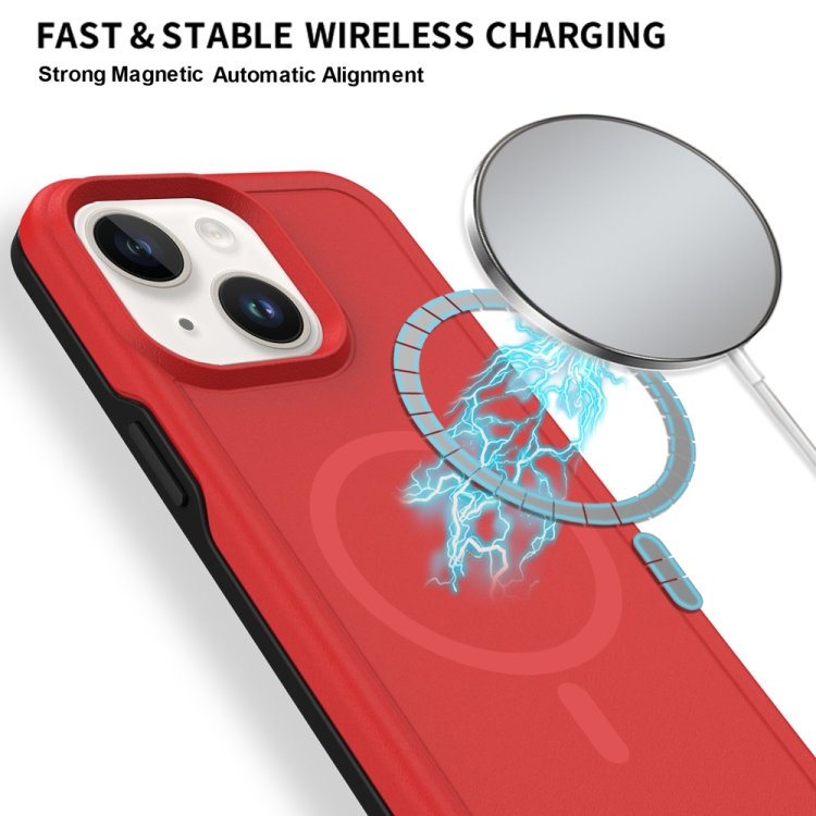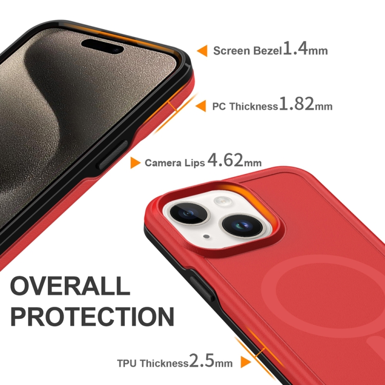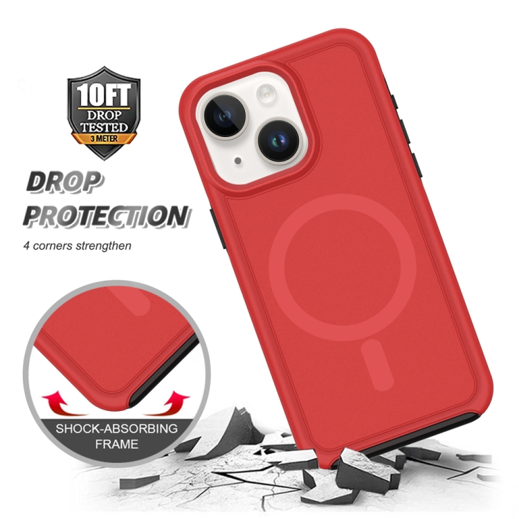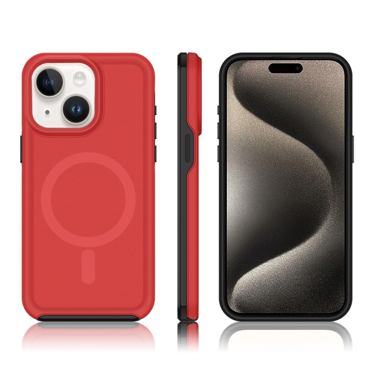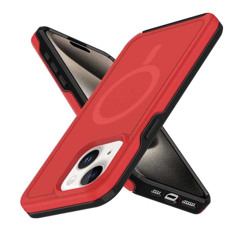 Funda híbrida TPU y PC iPhone 15 protección Magsafe a prueba de golpes (Rojo y Negro)