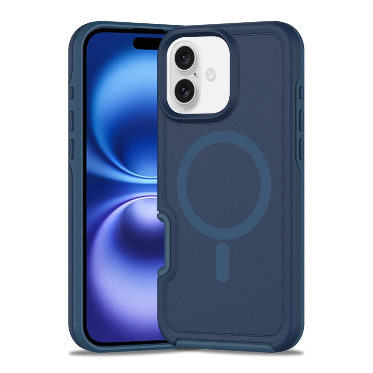 Funda híbrida TPU y PC para iPhone 16 con protección Magsafe a prueba de golpes (Azul Tinta)