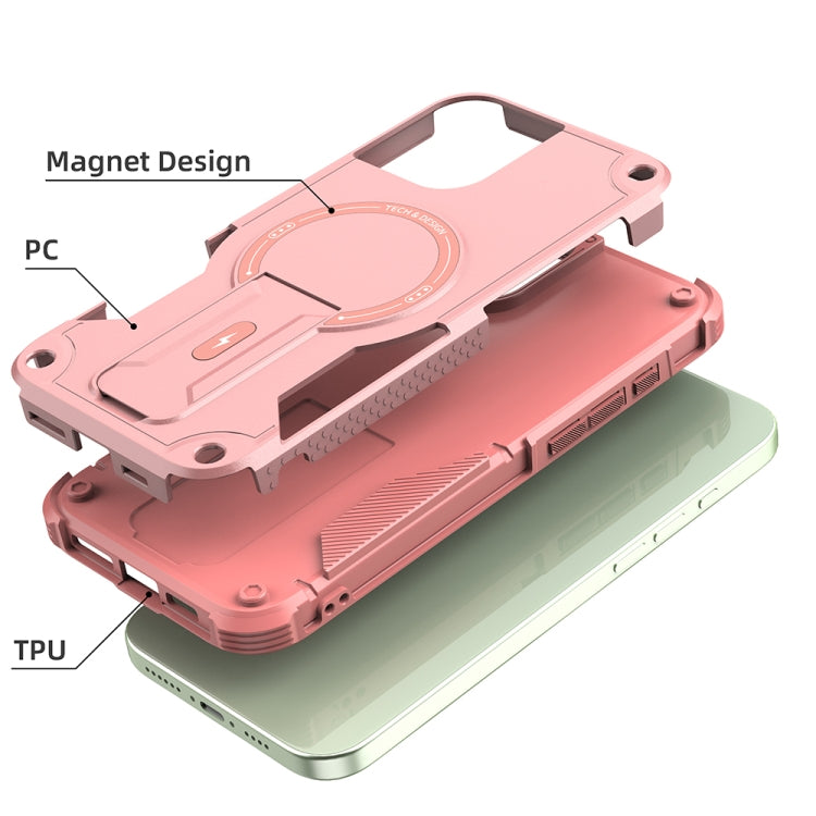 Funda híbrida TPU y PC con soporte Magsafe para iPhone 16 Plus (Rosa)